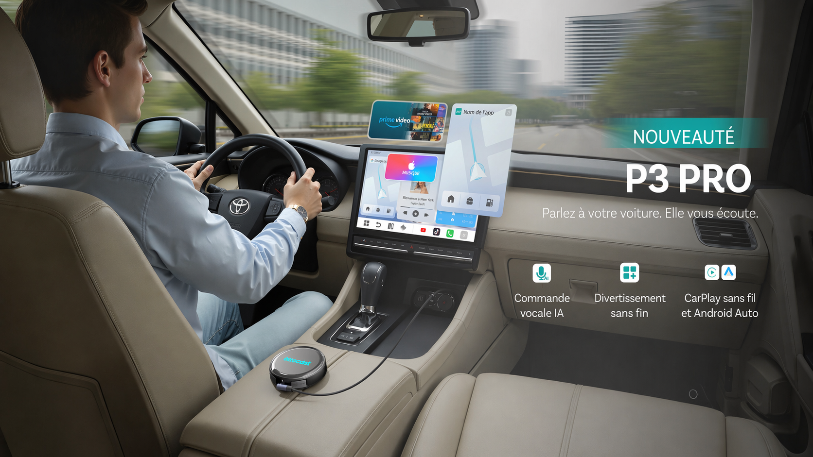 Connexion rapide, un habitacle sans câbles, une utilisation plus confortable au quotidien et un accès simplifié à vos applications préférées comme GPS, musique, appels et messages
